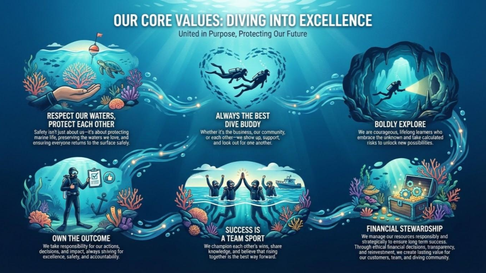 3. We are a community driven business. When our community thrives; the business thrives. See below for more on our Dive Club.